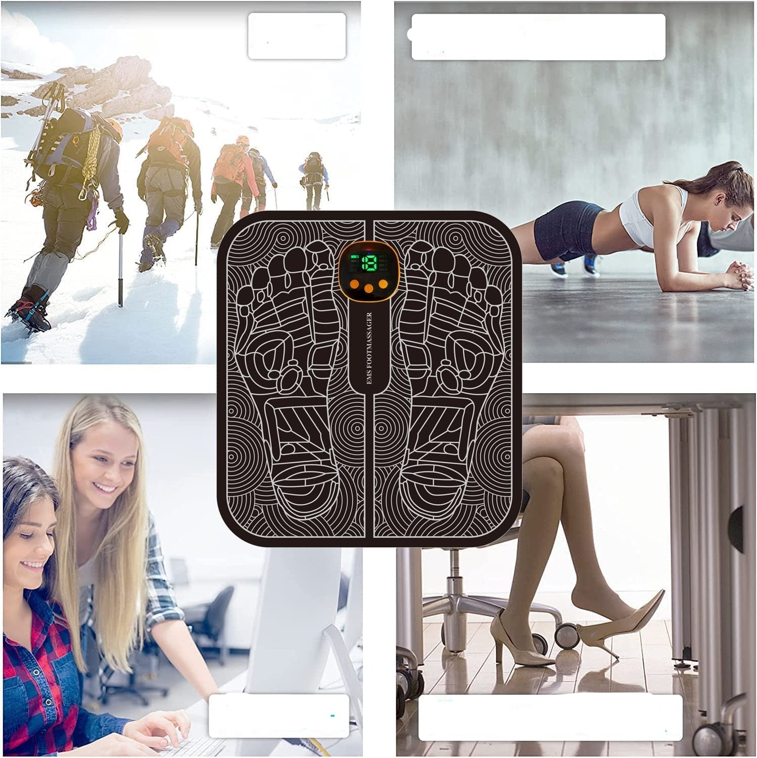 Almofada elétrica do massageador do pé do EMS, Estimulação elétrica do músculo, carregamento do USB, portátil, dobrável